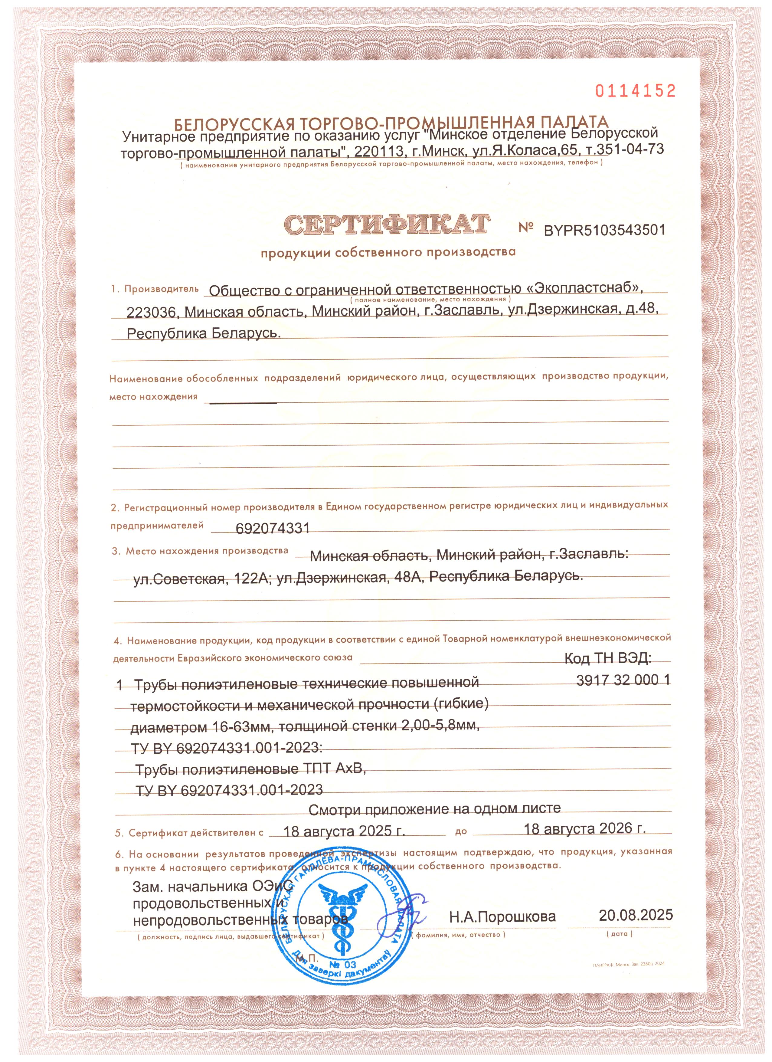 Трубы полиэтиленовые многослойные с негорючим внутренним слоем «ECOPIPE»